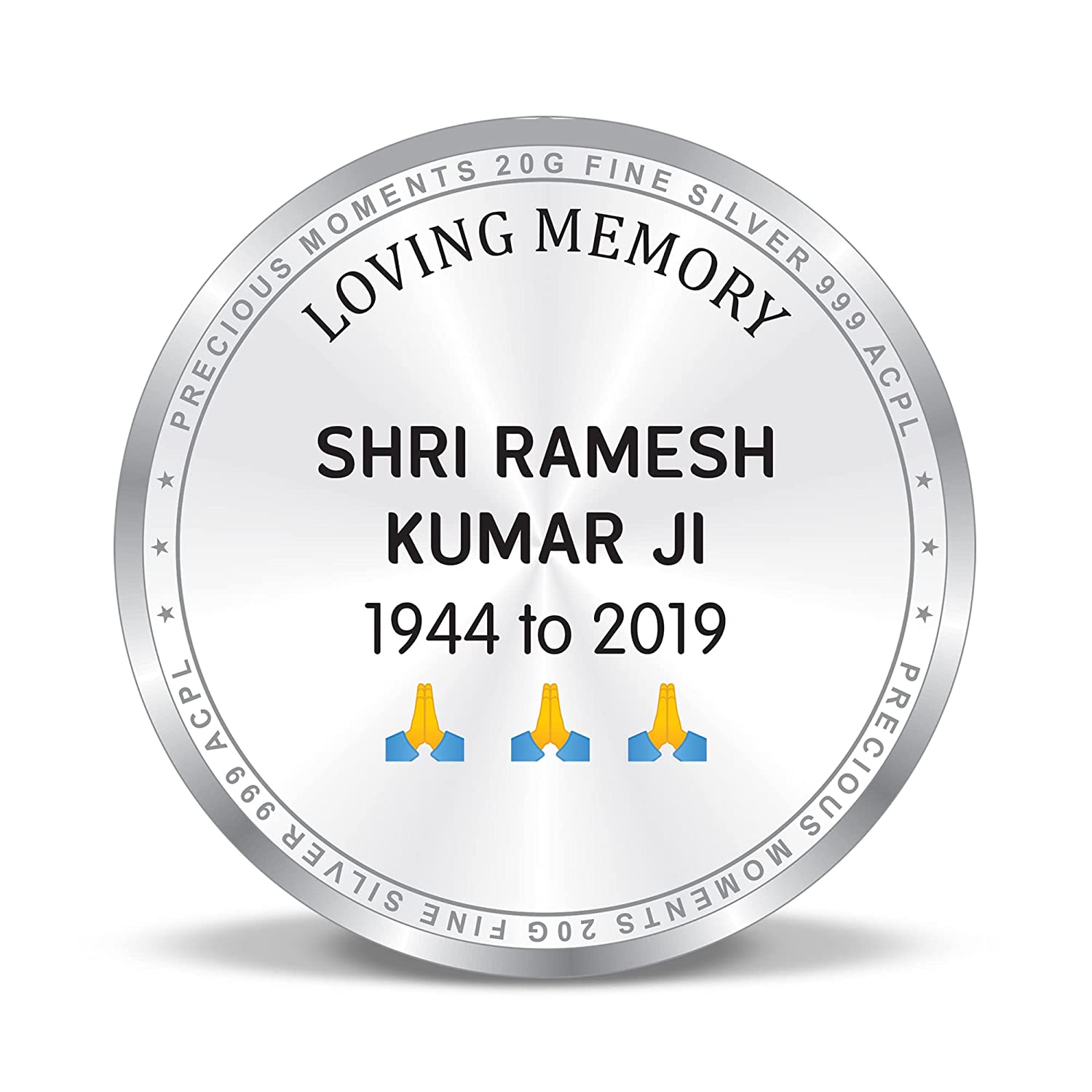 BIS Hallmarked Personalised Silver Coin Death Anniversary Memorial Gift 999 Pure