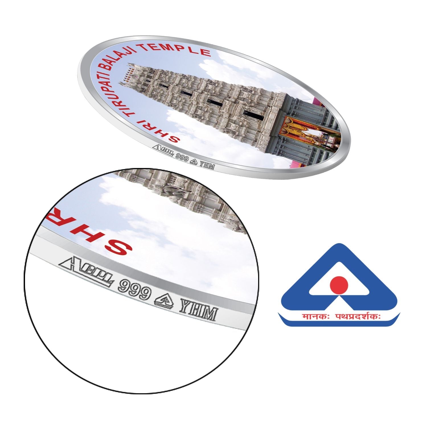 DESIGN: This Tirupati Balaji Temple silver coin depicts a beautiful portrayal of Shree Tirupati Balaji Temple, The backside of the coin portrays the "Shree Balaji" design. The design is machine printed and is not a sticker.