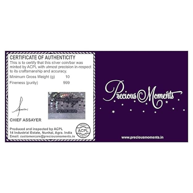 COMPANY INFORMATION: Precious Moments Coins are manufactured by ACPL, the company recognized by The Govt. of India as the "Highest Exporter of Silver Jewellery" for 20 consecutive years. This recognition is a testament to the purity, the quality and the environmental friendly manufacturing practices that ACPL stands for.