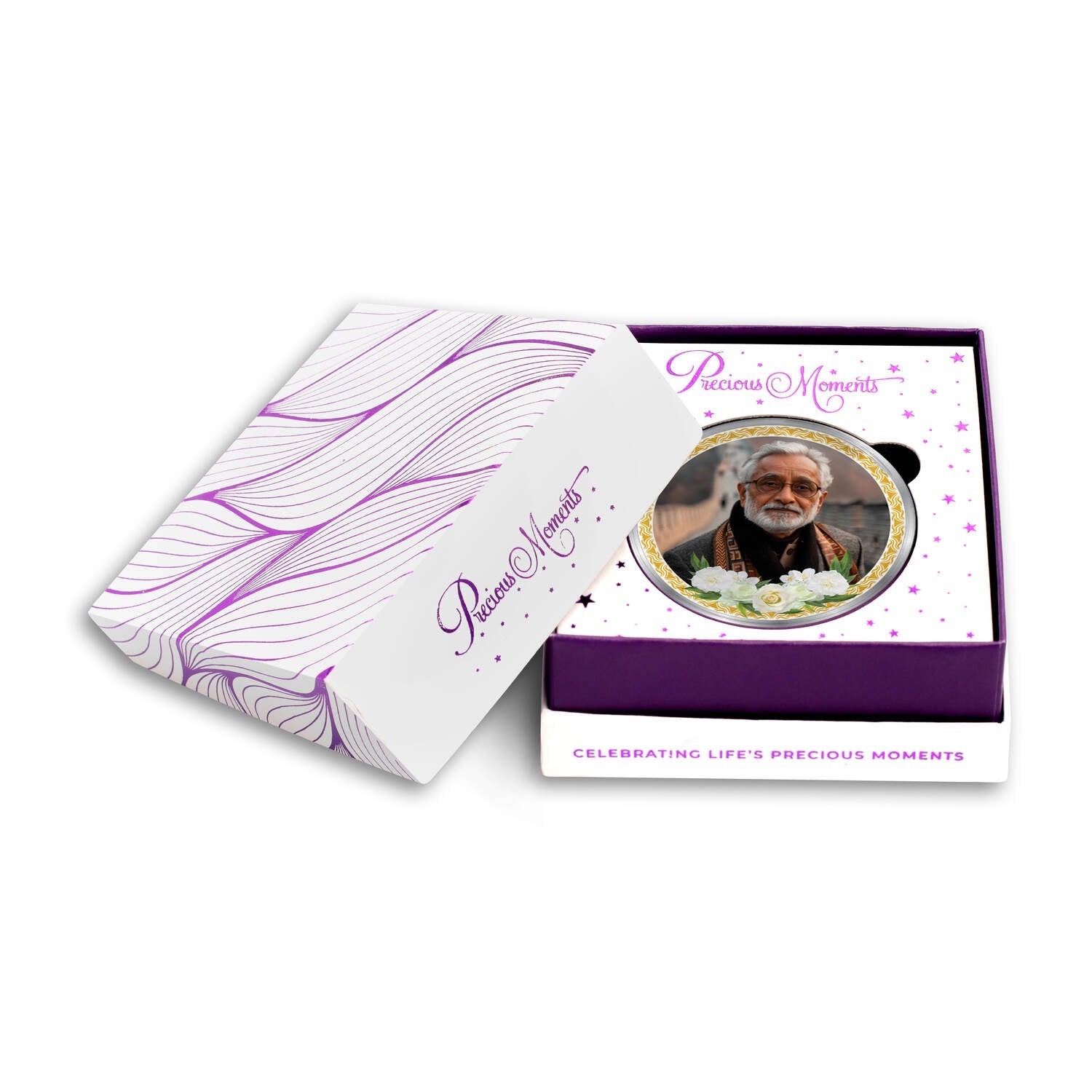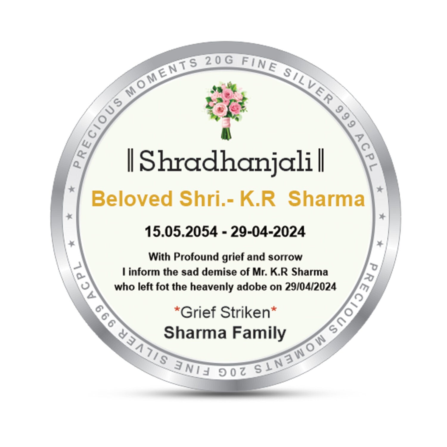 CONTENTS: 999 purity silver coin, BIS hallmarked. Ideal as a personalized or customized memorial gift for death anniversaries. Honor and cherish the memory of your loved one with this elegant silver coin