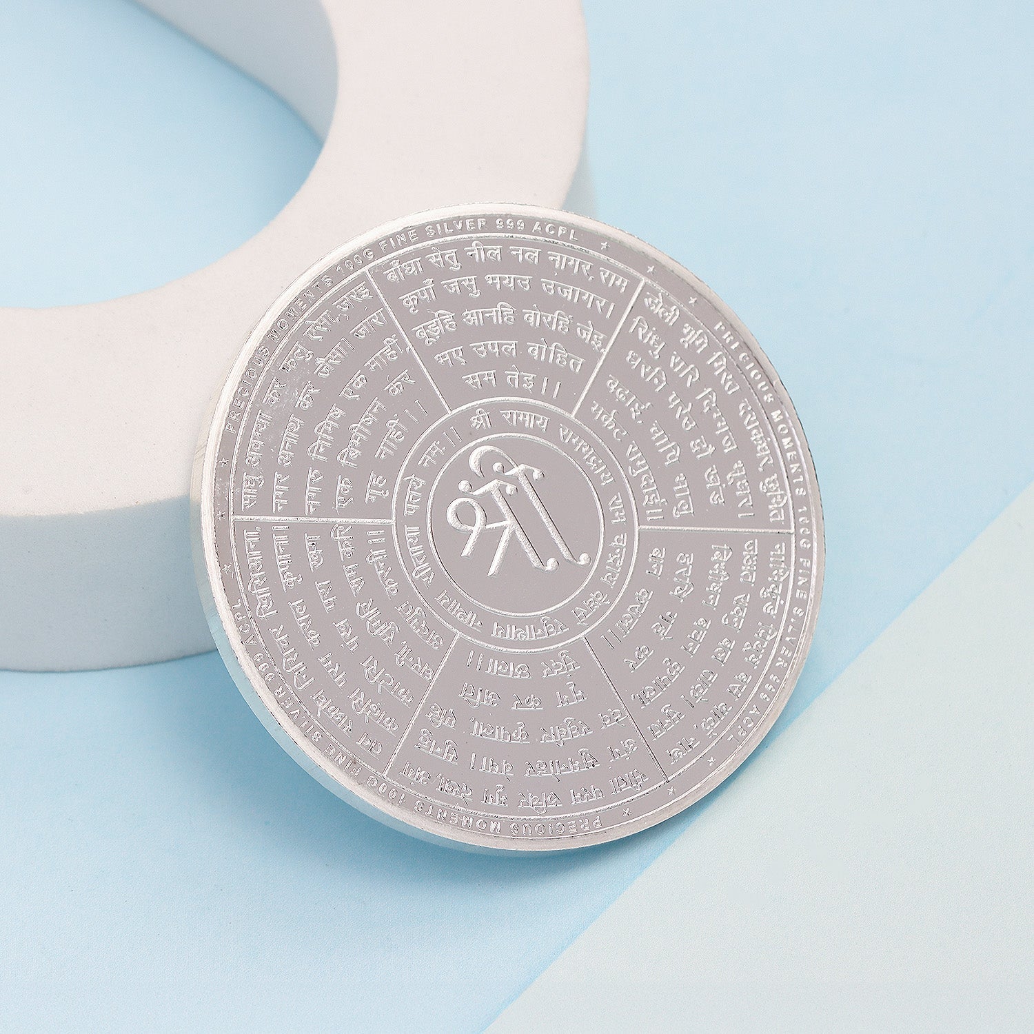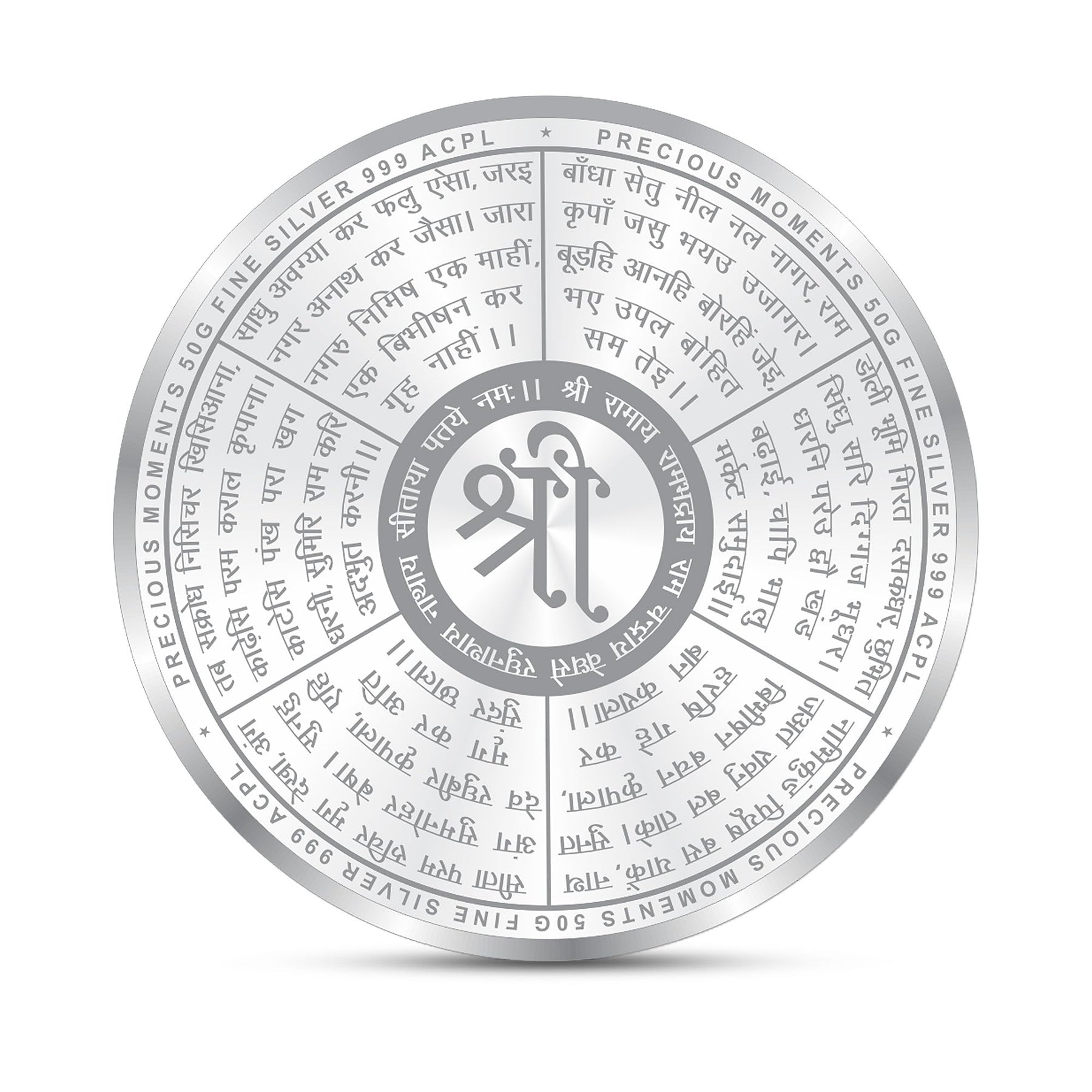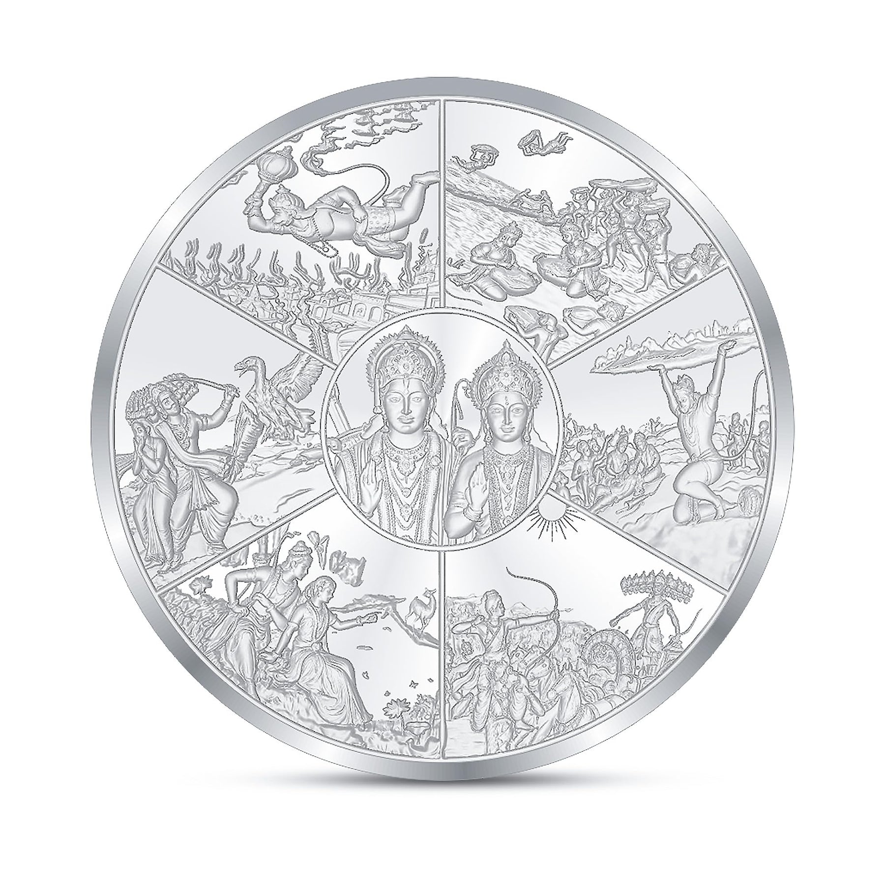 DESIGN: This coin depicts a beautiful potrayal of 'Shri Ram & Sita ji" with all the scenes of" Ramayana" The back side of the coin potrays,"Shri" Symbol with Chopai of Ramayan.