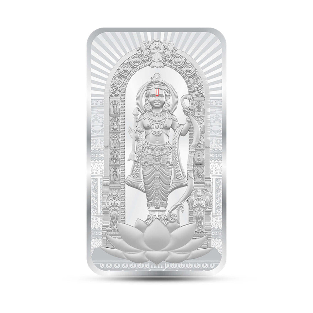 BIS Hallmarked Lord Ram Lalla | Ayodhya Temple | Ram Mandir 50Gm Silver Bar (999 Purity)