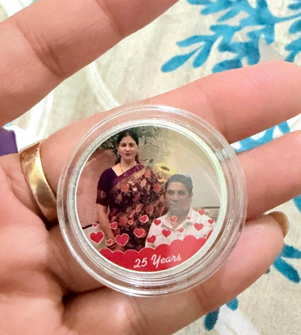 BIS Hallmarked ANNIVERSARY COIN PERSONALISATION DETAILS: "WE TAKE ONLY PRE-PAID ORDERS" Complete your order on Truesilver.co.in, Please send us the personalization details on WhatsApp @7302002224 or Email us at info@truesilver.co.in with the following details: "True Silver Order Number, Name, Image, Year & Date" that you want on the product. This design is machine-printed and is not a sticker.